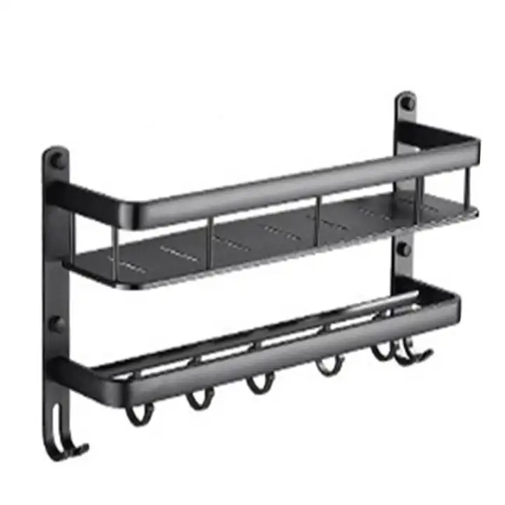 Bathroom Black Shelf Aluminum Shower Caddy Corner Shelf Towel Rack