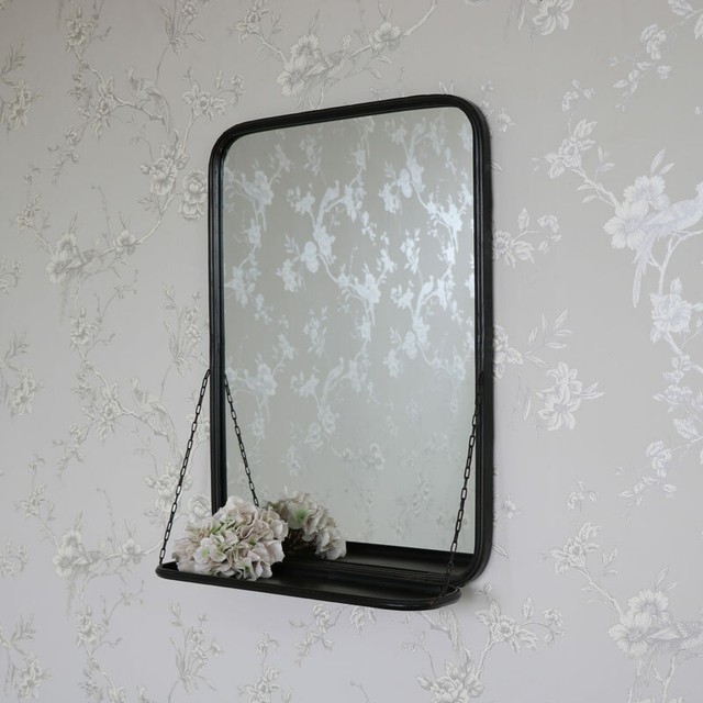 Black Tall Bathroom Mirror With Shelf Rockett St George