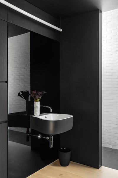 Luxurious Minimalist Bathroom With Slate Black Stone Wall Stock