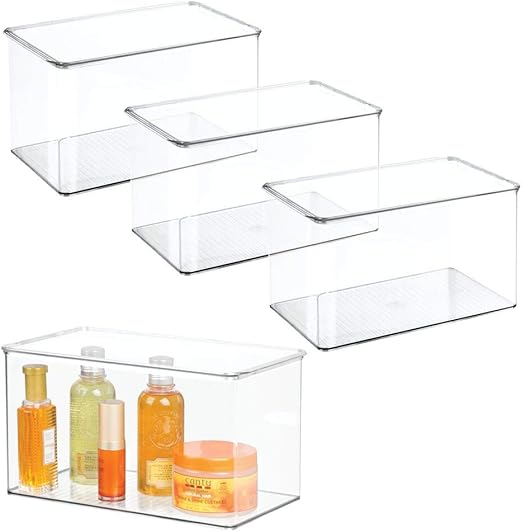 Amazon Com Mdesign Stackable Bathroom Storage Box With Lid