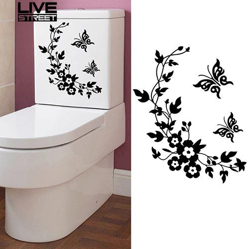 Vova Butterfly Flower Bathroom Toilet Decal Diy Wall Sticker