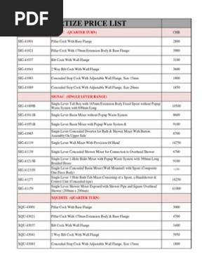 Jaquar Bathroom Fittings Pricelist Pdf Tap Valve Shower