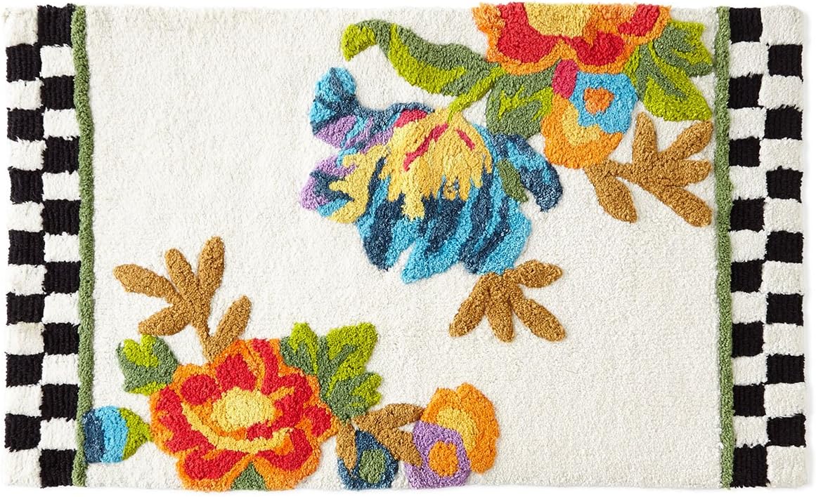 Amazon Com Mackenzie Childs White Flower Market Bath Mat Home