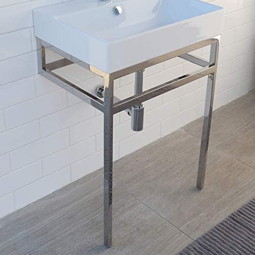 Nameeks Condal Ceramic Console Bathroom Sink With Chrome Stand