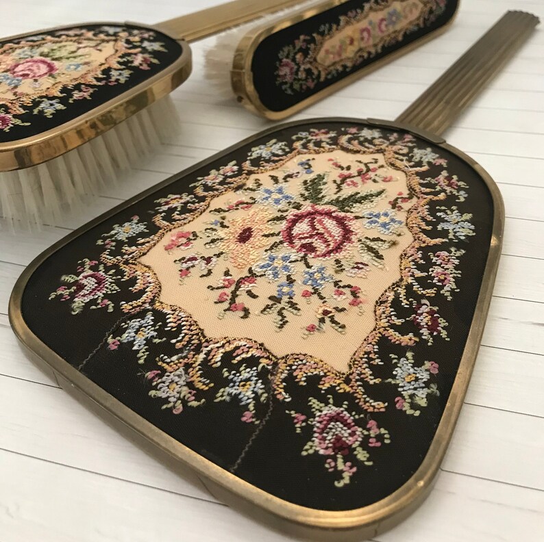 Vanity Accessories Vintage Bathroom Vanity Set Petit Point Etsy