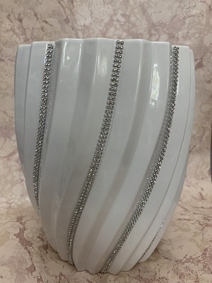Bella Lux White Rhinestone Swirl Ceramic Waste Basket Bath