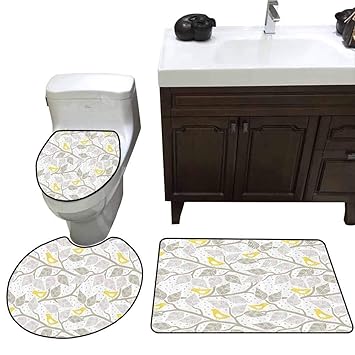 Amazon Com Bathroom 3 Piece Rug Set Leaves Grey Decor Collection