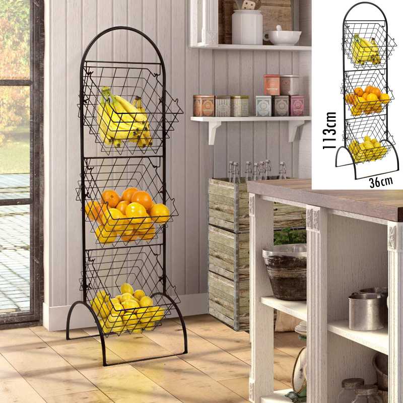Fruit Basket Stand Black Vegtables Produce Pantry Floor 3 Tier