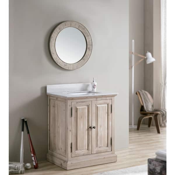 Bathroom Renovation Vintage Credenza Vanity Round Mirror