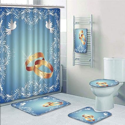 Amazon Com Iprint Bathroom 5 Piece Set Shower Curtain 3d Print