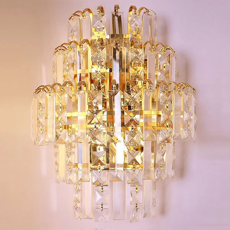 Gold Crystal Led Wall Sconces Lamps For Bedroom Living Room