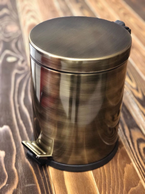 Bathroom Step Trash Can Gold Antique Brass Bin Step On Trash Etsy