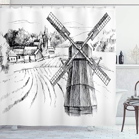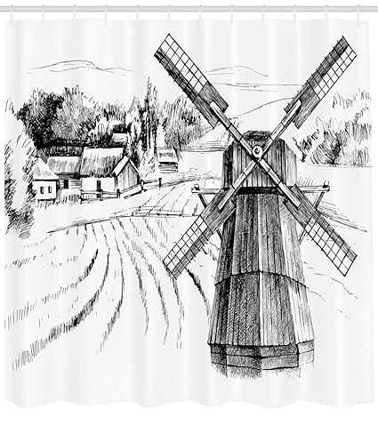 Amazon Com Ambesonne Landscape Shower Curtain Hand Drawn Rural