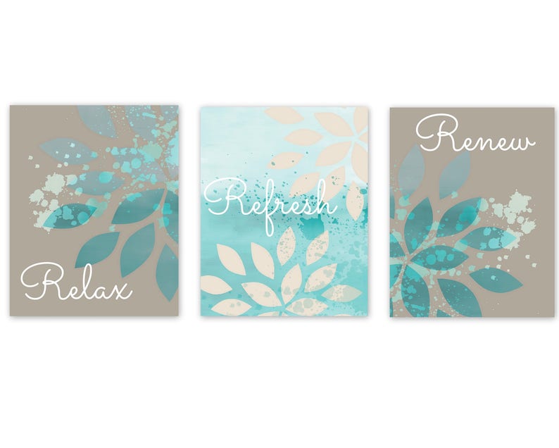 Bathroom Wall Decor Taupe Teal Bathroom Decor Turquoise Etsy
