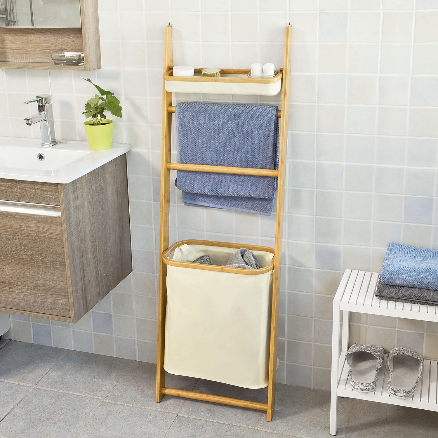 Sobuy Ladder Shelf Shelving Unit Towel Bathroom Shelf With Towel