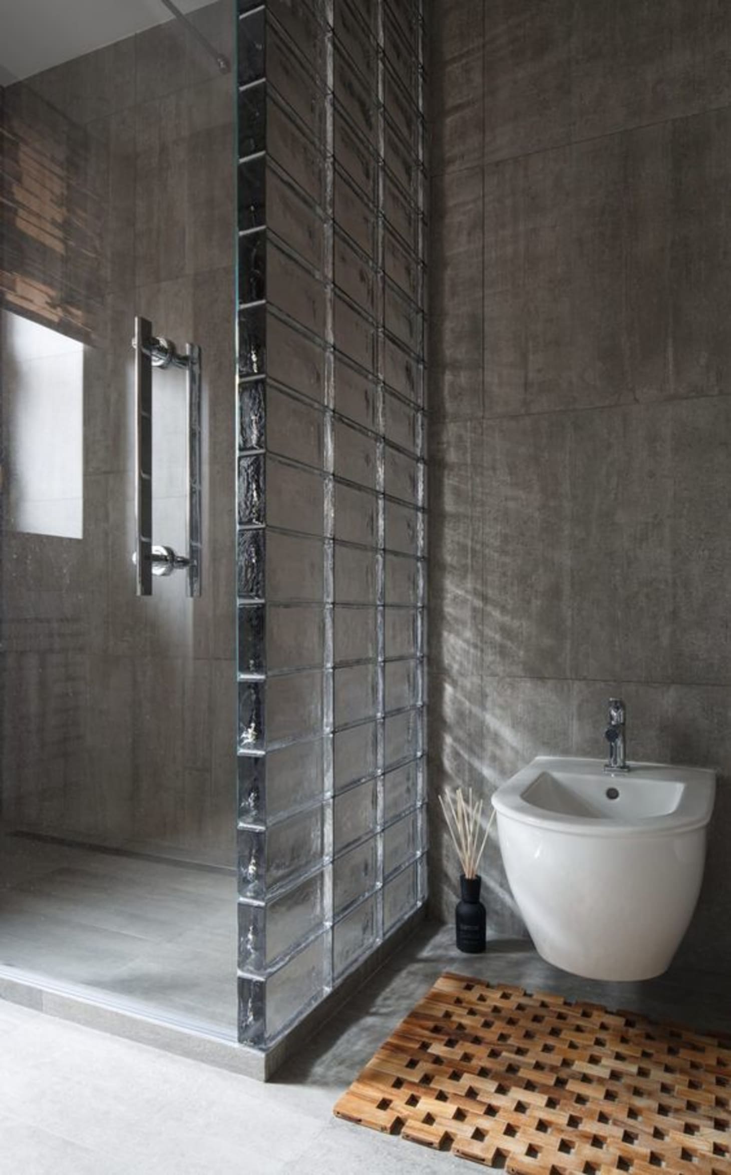 Modern Bathroom Detail Mosaic Tiles Shower Area Glass Block Wall
