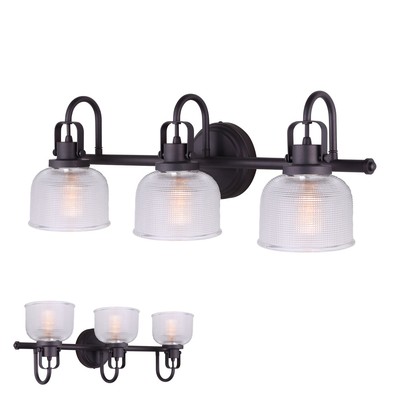 Oil Rubbed Bronze 3 Bulb Vanity Bath Light Bar Wall Fixture Clear