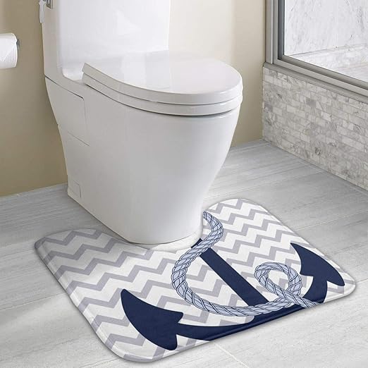 Amazon Com Ftrgrafe Navy Blue Wave Striped Anchor Contour Bath