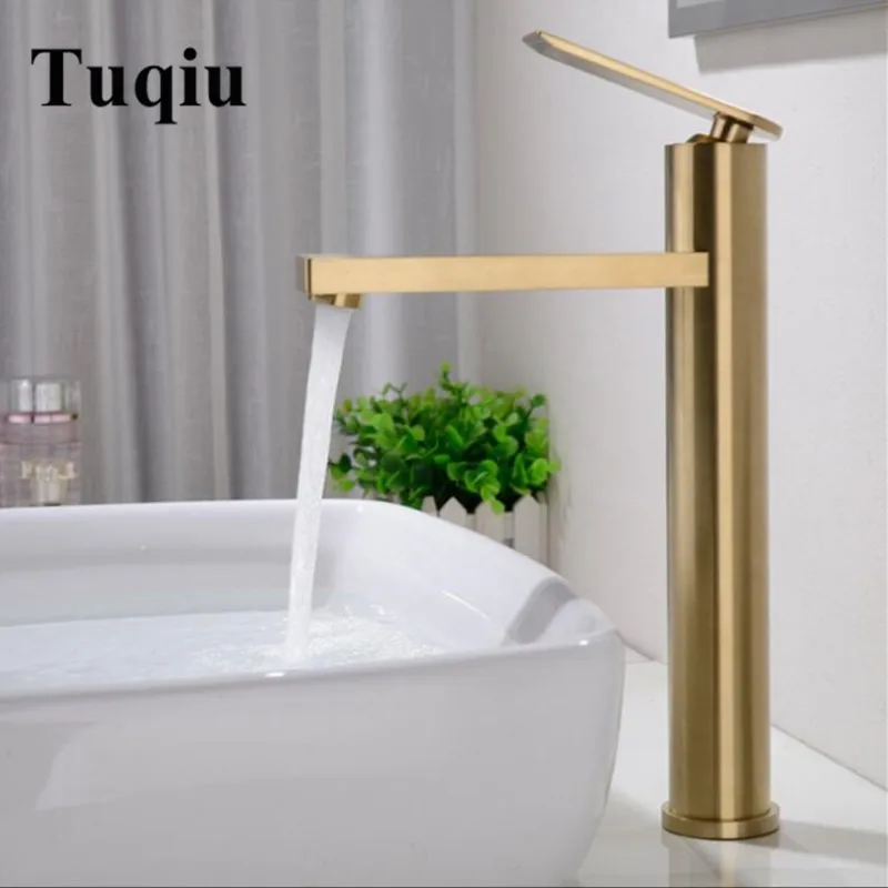 Basin Faucet Water Tap Bathroom Faucet Solid Matte Gold Brass Cold