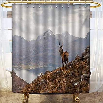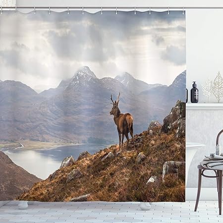 Abakuhaus Deer Shower Curtain Wild Stag Overlooking Loch Torridon