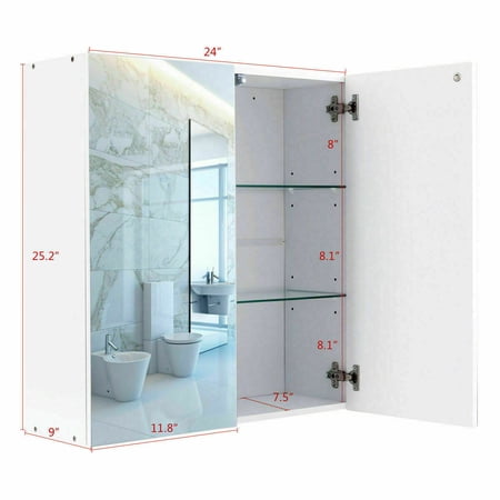 Gymax 24 Wide Wall Mount Mirrored Bathroom Medicine Storage