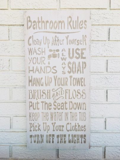 Bathroom Rules Sign Funny Bathroom Decor Kids Bathroom Wood Etsy