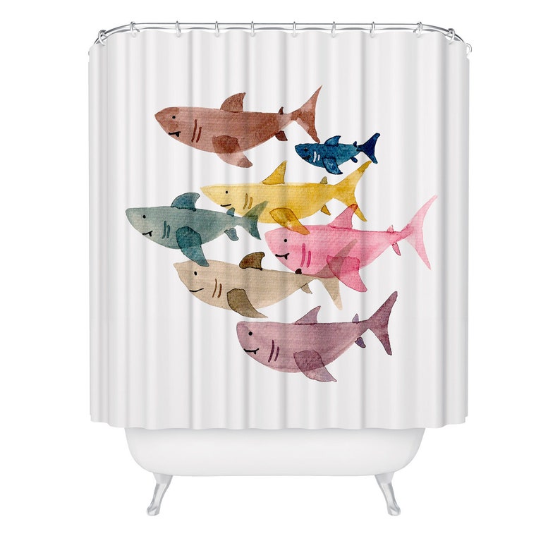 Whimsical Sharks Shower Curtain Cute Kids Bathroom Decor Etsy