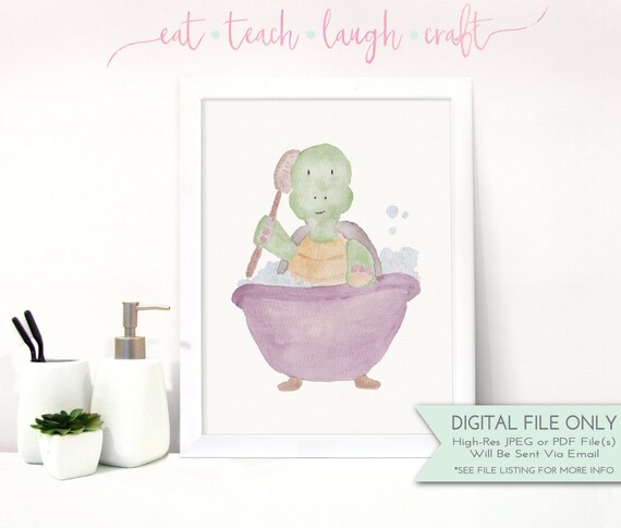 Kids Bathroom Print Turtle In Tub Diy Printable Art Etsy