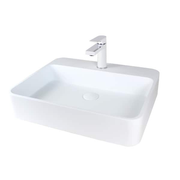 Wall Hung Stone Resin Rectangle Bathroom Ramped Sink In Matte Or