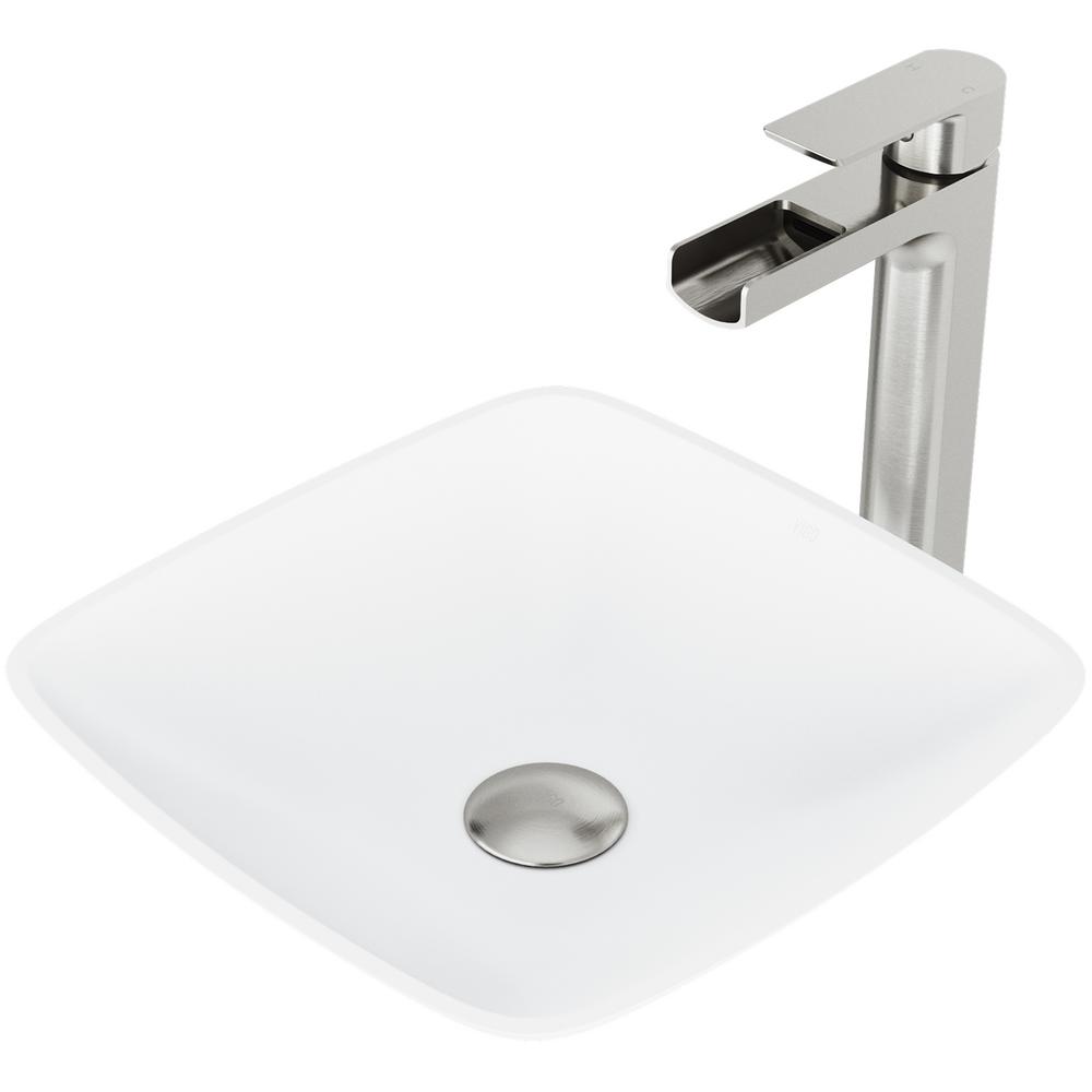 Vigo Hyacinth White Matte Stone Vessel Bathroom Sink Set With