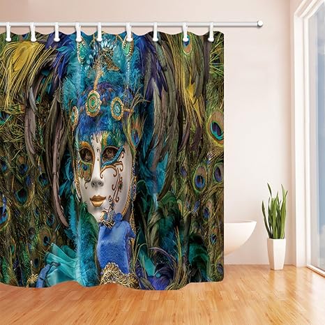 Nyngei Brazilian Girl With Mask Peacock Tail Shower Curtain 17