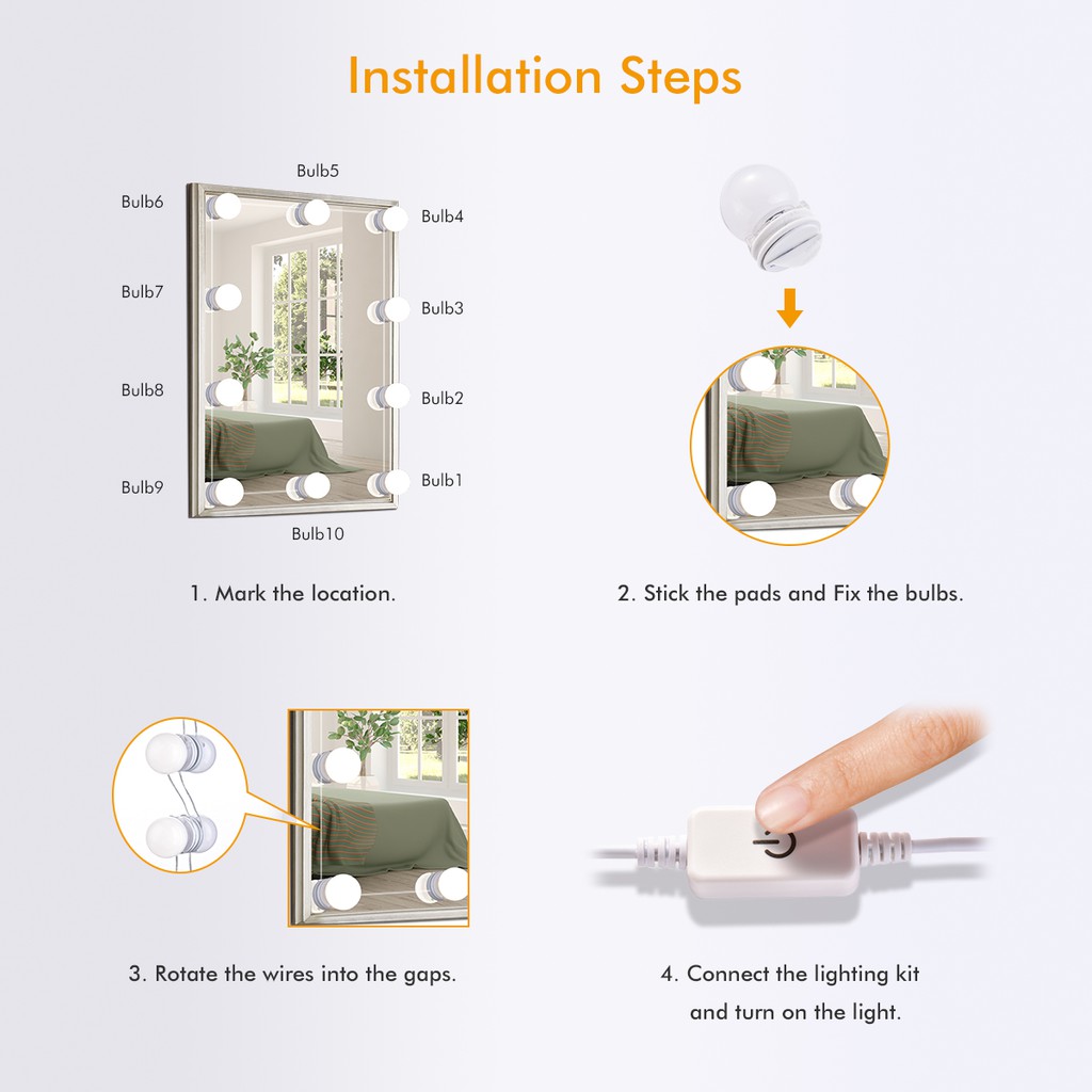 Hollywood Led Vanity Mirror Lights Kit With Dimmable Light Bulb