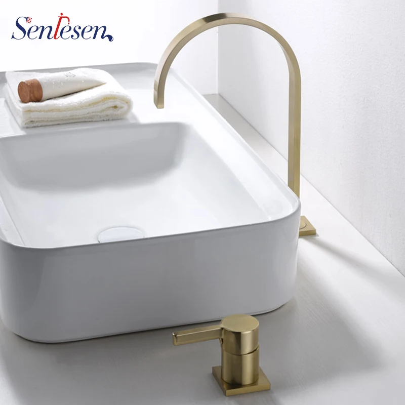 Basin Faucet Bathroom Super Long Pipe Two Holes Rose Gold Bathroom