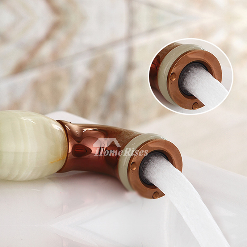 Unique Three Hole Jade Rose Gold Bathroom Sink Faucets
