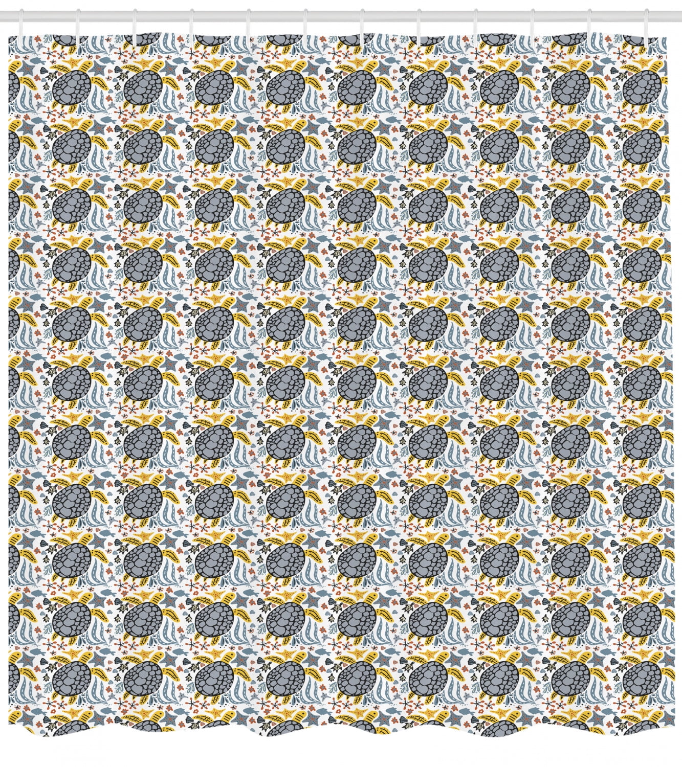 Turtle Shower Curtain Hand Drawn Ocean Fauna Pattern With