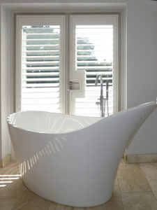 These waterproof shutters have the same appearance of wooden shutters but are made from vinyl which wont warp or split when in contact with water. They can come into direct contact with water and live to tell the tale in tip top condition for years and years. Traditional bathroom coverings such as venetian or pull down blinds can become damp and prone to mildew build up in humid conditions.