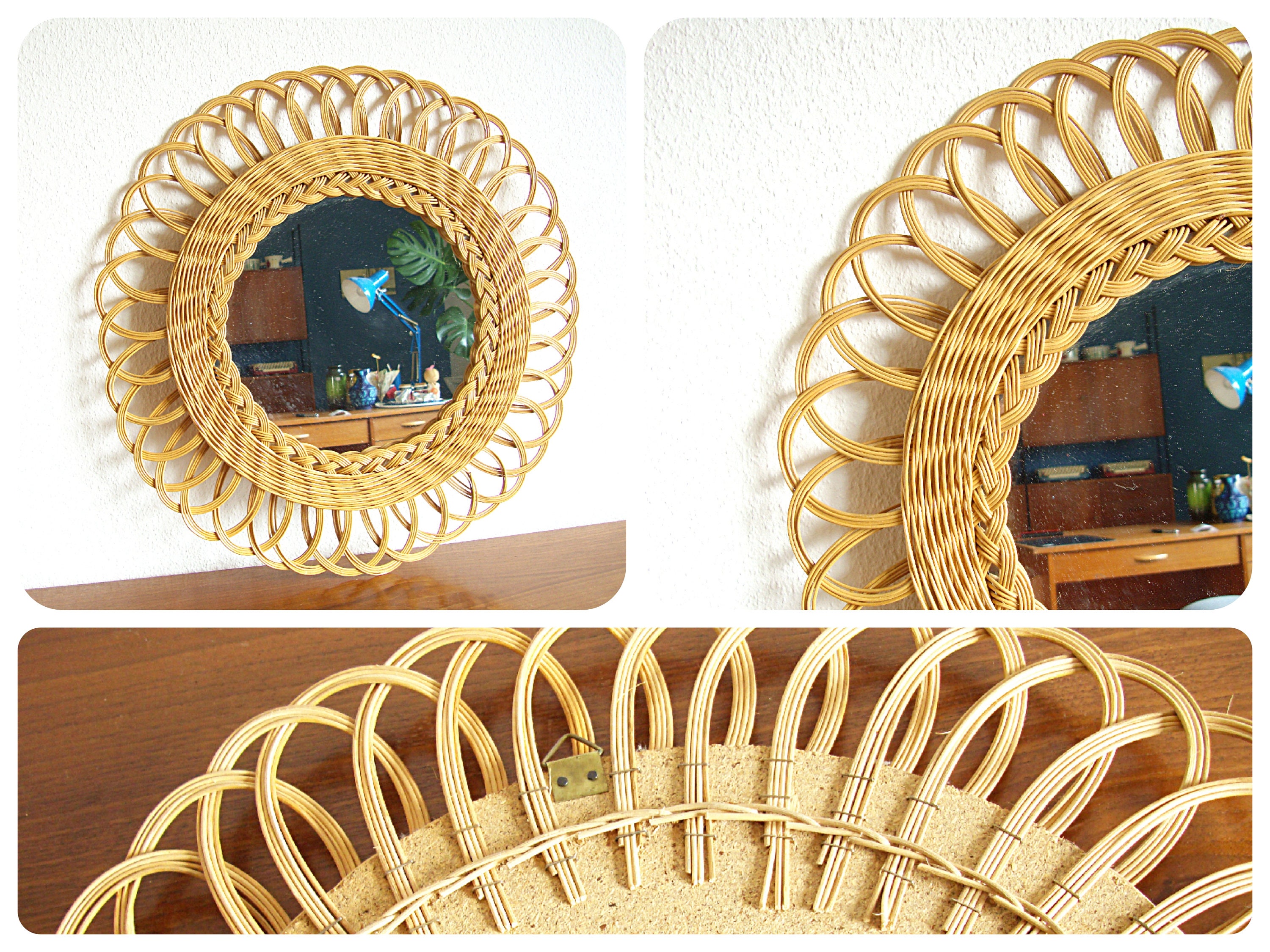 Large Mirror Wall Mirror Rattan Basket Around 50s 60s Vintage Etsy