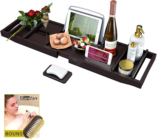 Amazon Com Bamburoba Bathtub Caddy Tray Bamboo Bathroom Organizer