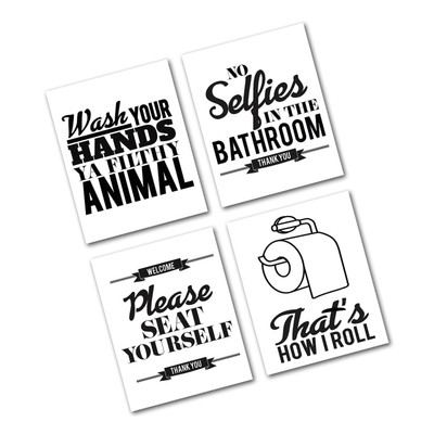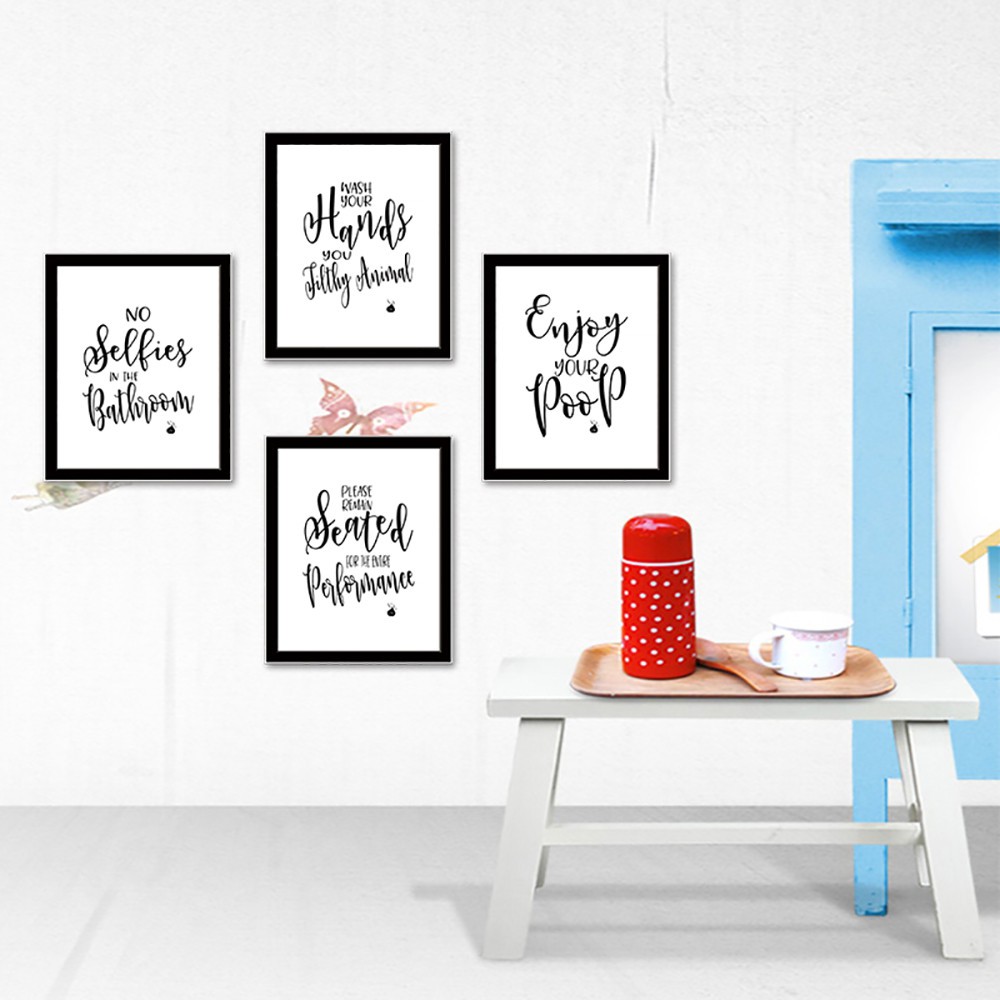 Funny Bathroom Decor Poop Quote Series 4 Pieces Set Wall Art Cute
