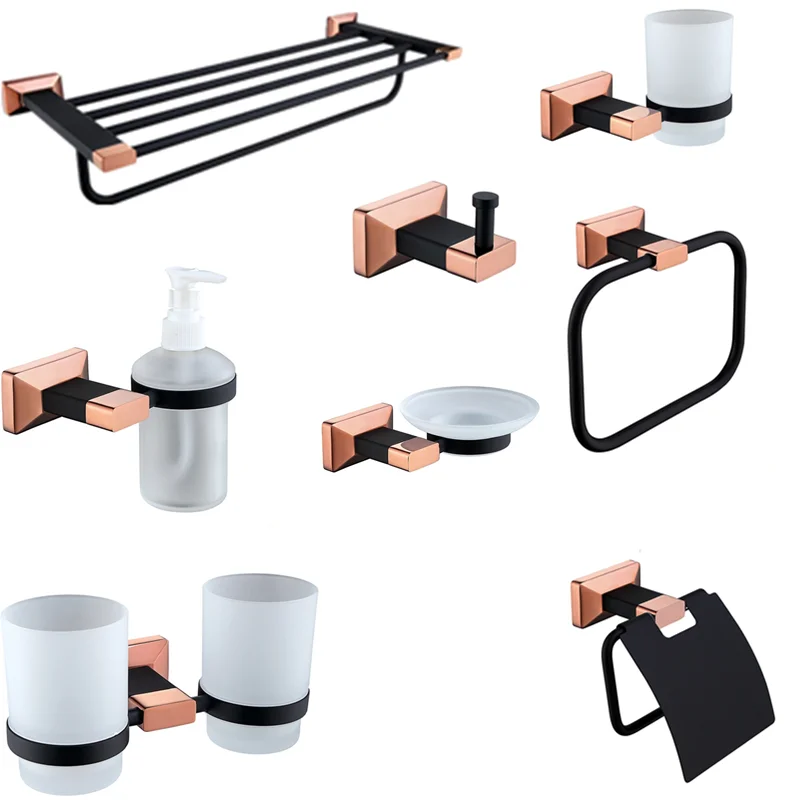 Solid Brass Rose Gold And Black Toilet Brush Holder Ceramic Cup