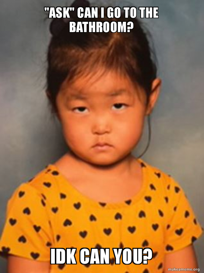 Ask Can I Go To The Bathroom Idk Can You Meme Make A Meme
