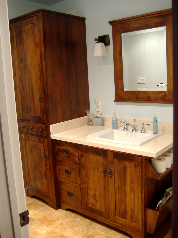 Wormy Maple Rustic Vanity And Linen Tower Rustic Bathroom