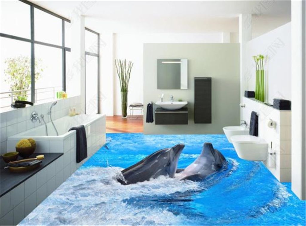 Custom Any Size 3d Mural Wallpape 3d Bathroom Cute Dolphin Tour