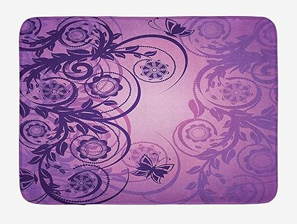 Amazon Com Library Design Purple Bath Mat Curved Flower