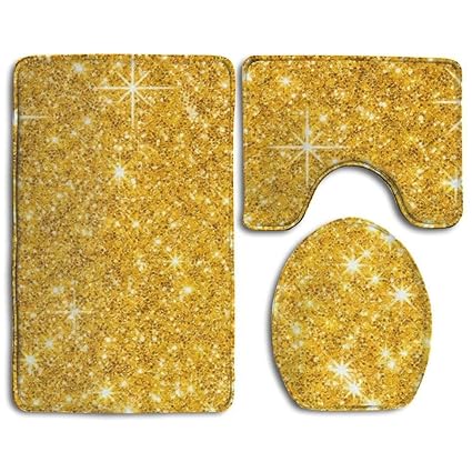 Amazon Com Ccbutba Bath Mat 3 Piece Bathroom Rug Set Gold