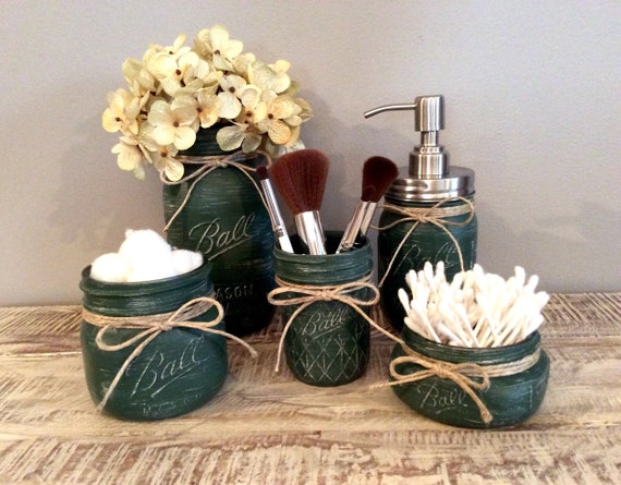 Mason Jar Bathroom Set Green Bathroom Decor Farmhouse Etsy
