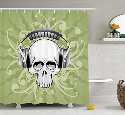 Tyang Skull Decor Shower Curtain Skeleton Scary Head With
