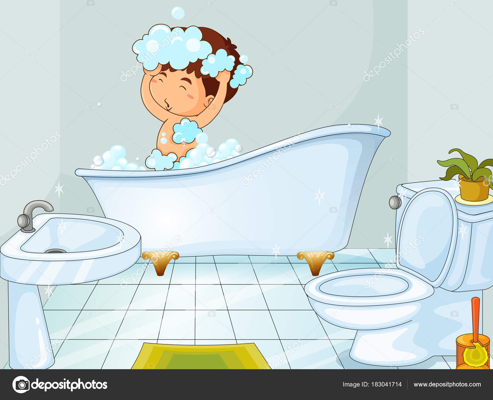 Clipart Boy Taking A Bath Boy Taking Bath In Bathroom Stock