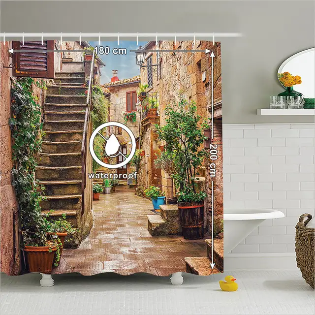 Fabric Shower Curtain Vintage Bathroom Accessories Tuscan
