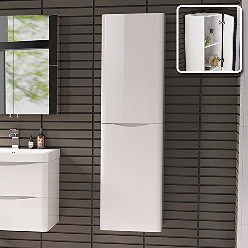 Modern Wall Mounted Tall Bathroom Cabinet White Gloss Impact